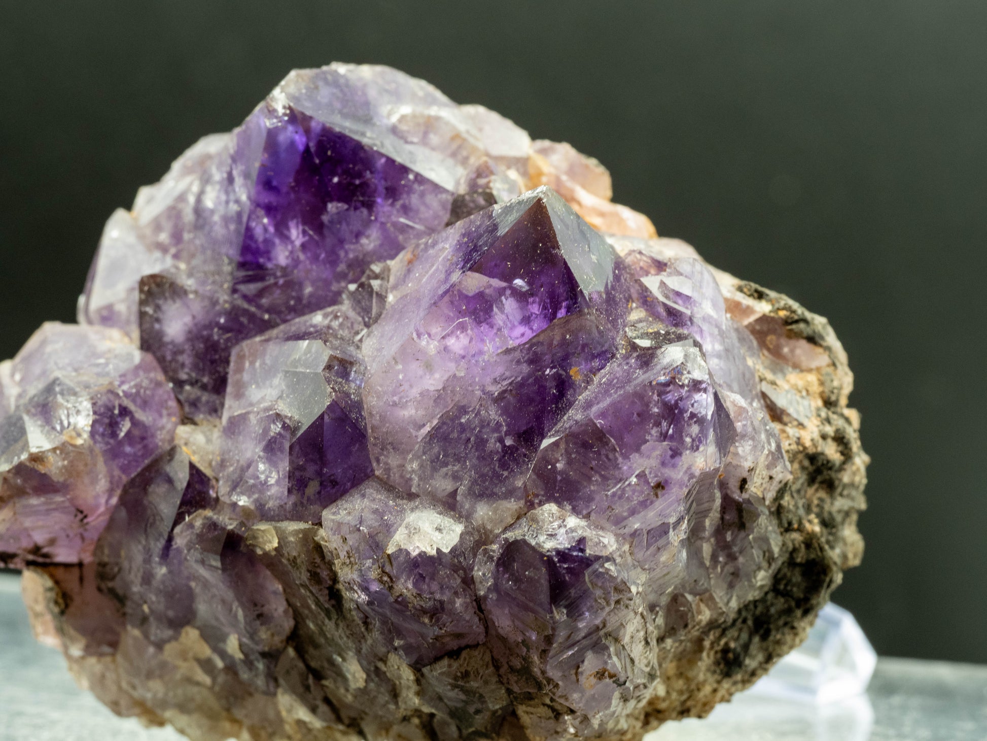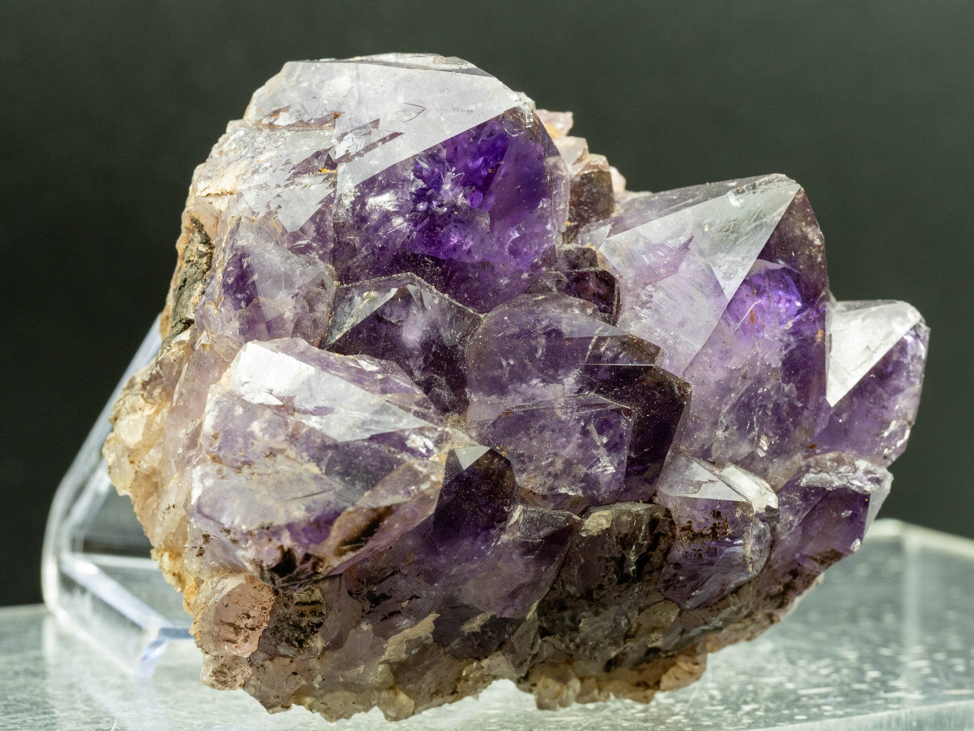 This striking amethyst cluster comes from the scenic Port au Port Peninsula of Newfoundland, a locality prized for its coastal geology and unique mineral occurrences. The cluster showcases a rich purple hue, ranging from deep violet to lighter lavender tones, with crystal points that capture and reflect light beautifully. Each termination is sharply defined, creating a natural sparkle that enhances the visual depth of the piece. Amethyst from this region is not only sought after for its beauty but also for its relative rarity compared to more common Brazilian or Uruguayan sources.