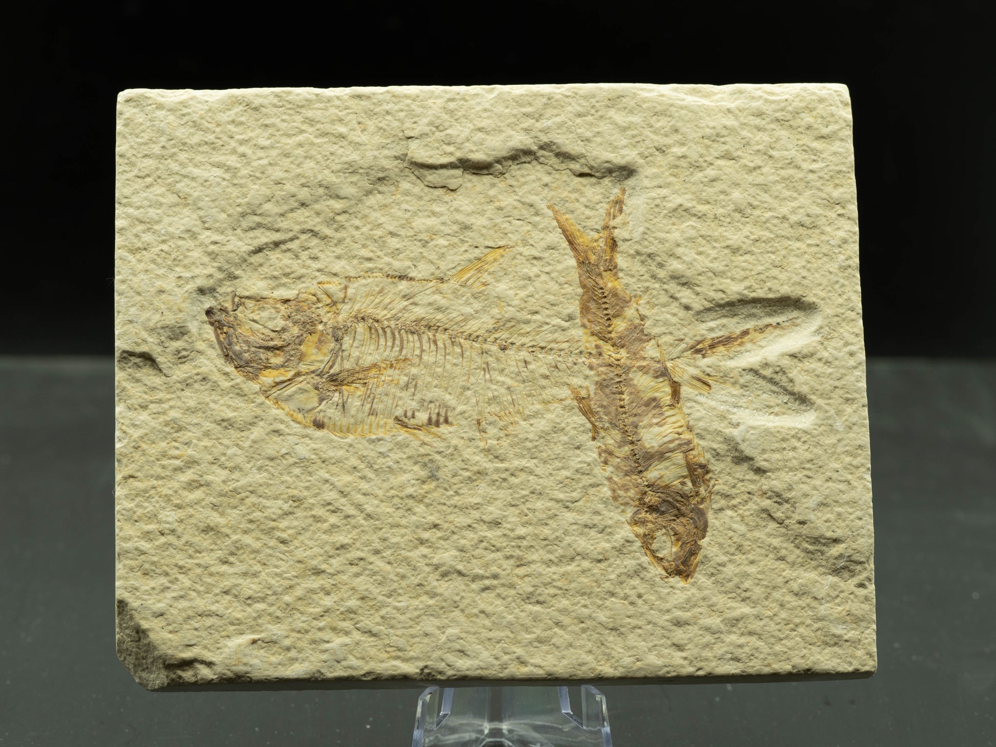 This fossil plate features Knightia eocaena, one of the most abundant and iconic fish species preserved in the Green River Formation. Dating back roughly 50 million years, this specimen captures an entire fish in fine detail, from the delicate fins to the distinctive streamlined body. The soft limestone matrix preserves these fossils with extraordinary clarity, making each piece a natural work of art as well as a scientific treasure.