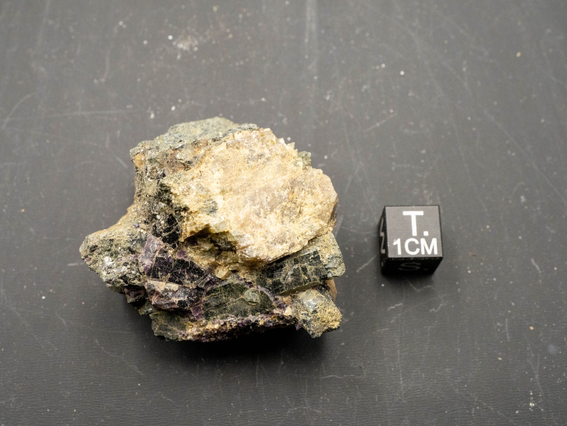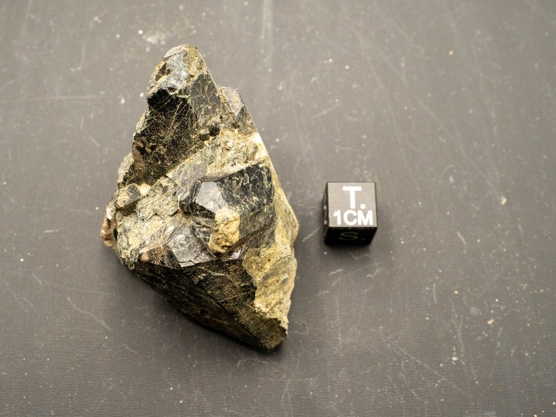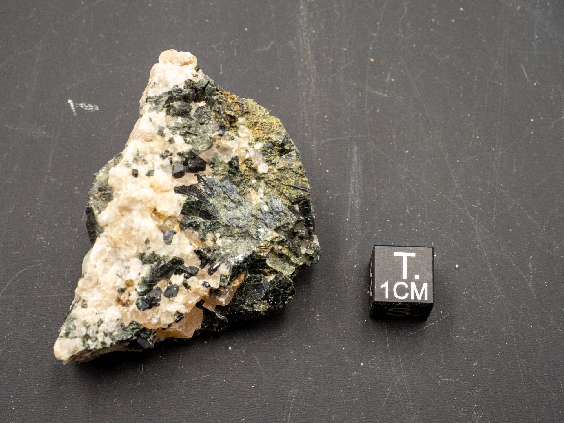 The Yates Mine, located near Otter Lake in Quebec's Pontiac region, lies within the Grenville Geological Province—an area dominated by high-grade metamorphic and intrusive Precambrian rocks. The deposit is characteristic of a carbonate-hosted skarn system, where hydrothermal fluids from nearby igneous activity metasomatized limestone or dolomite, creating calc-silicate assemblages. This activity produced vuggy calcite-rich vein-dikes and skarn pockets rich in calcium-magnesium-iron silicate minerals typical of contact metamorphism zones. The area was first mined around 1906 and has since been reclaimed, but it remains a classic locality for distinctive mineral paragenesis.