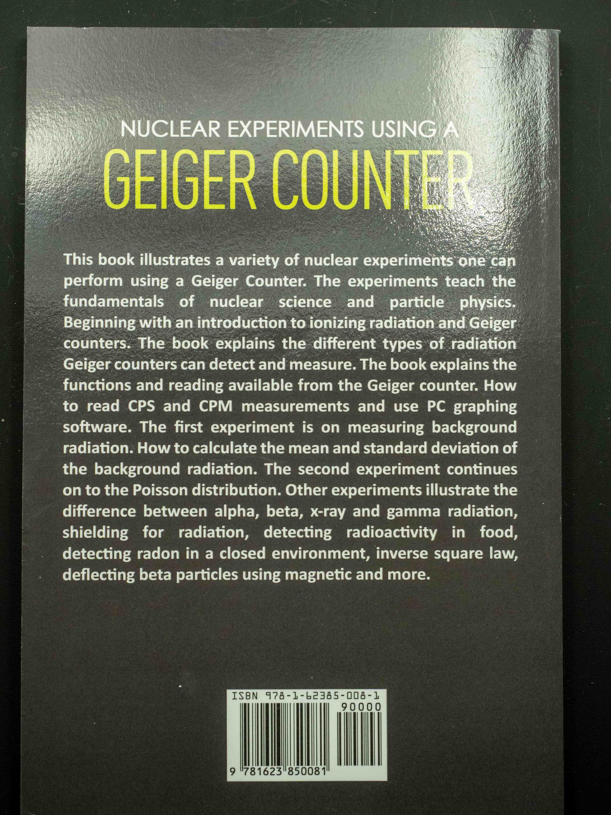 This book illustrates a variety of nuclear experiments one can perform using a Geiger Counter. The experiments teach the fundamentals of nuclear science and particle physics. Beginning with an introduction to ionizing radiation and Geiger counters. The book explains the different types of radiation Geiger counters can detect and measure. The book explains the functions and reading available from the Geiger counter. How to read CPS and CPM measurements and use PC graphing software. The first experiment is on measuring background radiation. How to calculate the mean and standard deviation of the background radiation. The second experiment continues on to the Poisson distribution. Other experiments illustrate the difference between alpha, beta, x-ray and gamma radiation, shielding for radiation, detecting radioactivity in food, detecting radon in a closed environment, inverse square law, deflecting beta particles using magnetic and more.