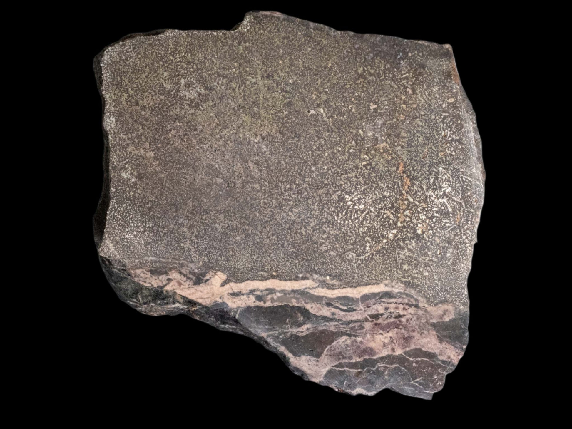 A large, cut endpiece of primarily dendritic silver ore with minor Uraninite from the historical Eldorado Mine in Port Radium, NWT, Canada. Cut from a larger stone that was originally in the collection of the Royal Ontario Museum in Toronto. This is an extremely rare specimen, and would make an excellent addition to any mineral collection.