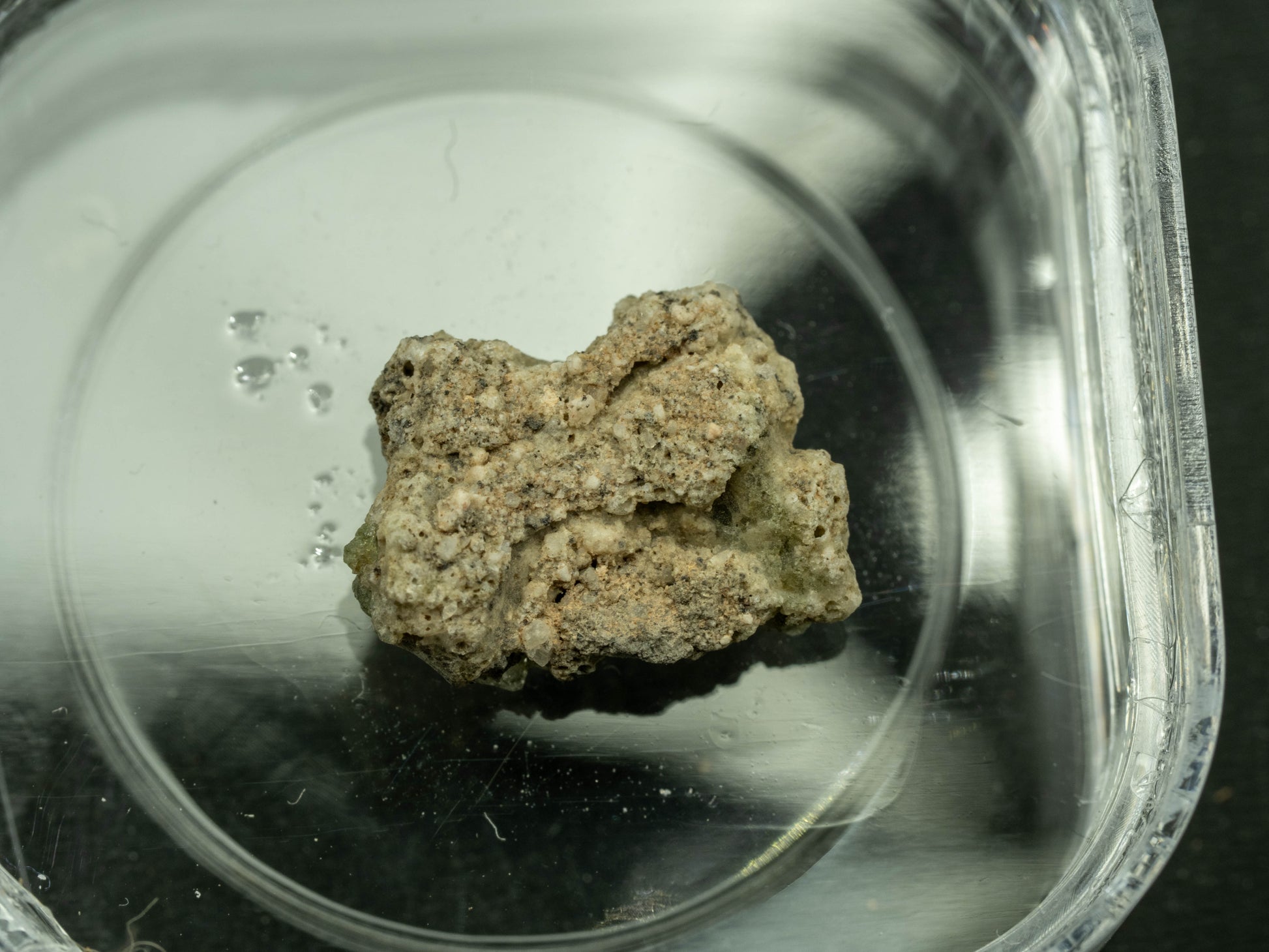 Trinitite, also known as "atomic glass," is a unique type of glassy material formed as a byproduct of the first atomic bomb test, the Trinity Test, conducted on July 16, 1945, in the New Mexico desert. When the bomb detonated, the immense heat and pressure vaporized the sand at ground zero, which then condensed and solidified into a greenish, glass-like substance. Trinitite is composed primarily of fused quartz and feldspar, along with traces of isotopes such as uranium and plutonium, remnants of the nuclear explosion. Its formation represents the merging of natural geological materials with the unprecedented energy of a man-made nuclear event, making it a striking symbol of the atomic age.