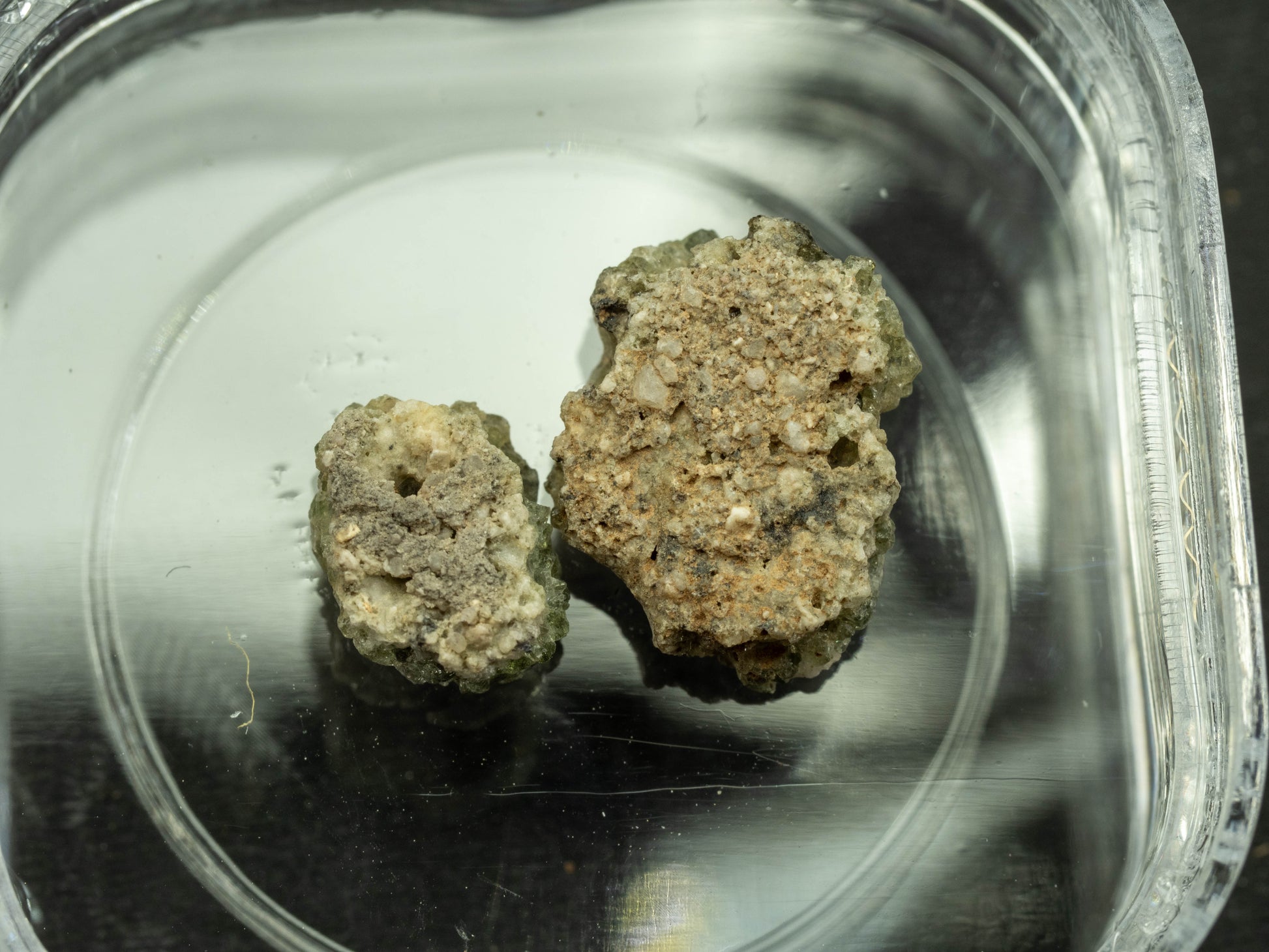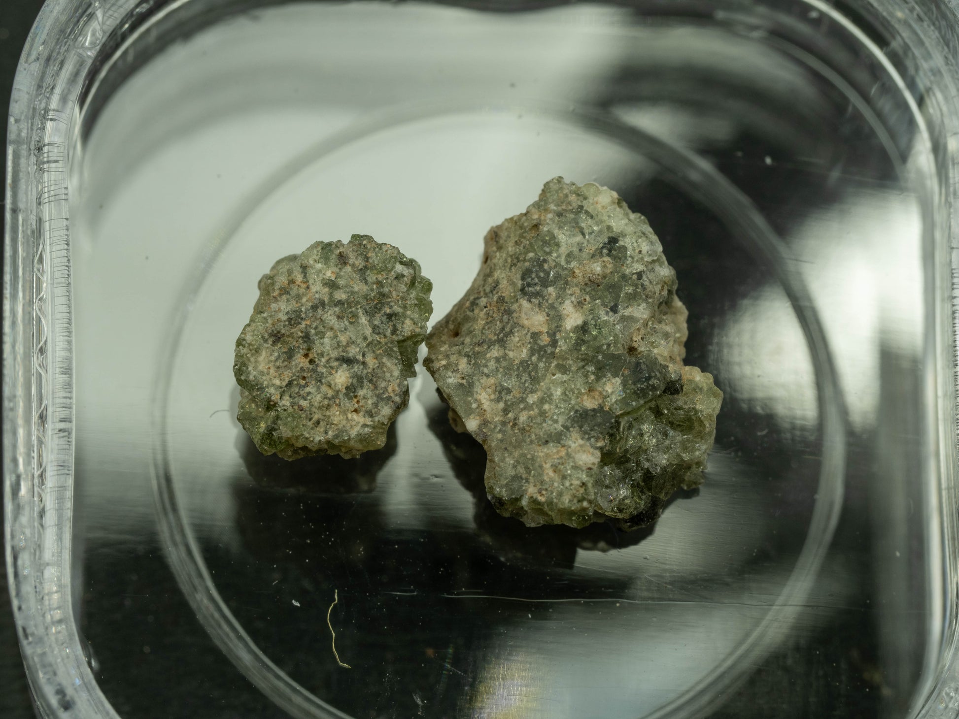 Trinitite, also known as "atomic glass," is a unique type of glassy material formed as a byproduct of the first atomic bomb test, the Trinity Test, conducted on July 16, 1945, in the New Mexico desert. When the bomb detonated, the immense heat and pressure vaporized the sand at ground zero, which then condensed and solidified into a greenish, glass-like substance. Trinitite is composed primarily of fused quartz and feldspar, along with traces of isotopes such as uranium and plutonium, remnants of the nuclear explosion. Its formation represents the merging of natural geological materials with the unprecedented energy of a man-made nuclear event, making it a striking symbol of the atomic age.