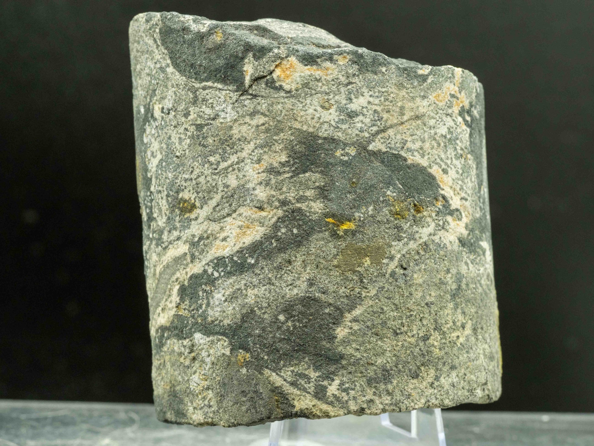 This large and exceptionally rich uraninite drill core originates from the Moab area of Utah, a region renowned for its high-grade uranium deposits and extensive exploration history. The cylindrical core format provides a direct glimpse into subsurface mineralization, preserving the geological context in which the uraninite occurs. Dense, dark uraninite is clearly visible, making this a particularly impressive and educational specimen.