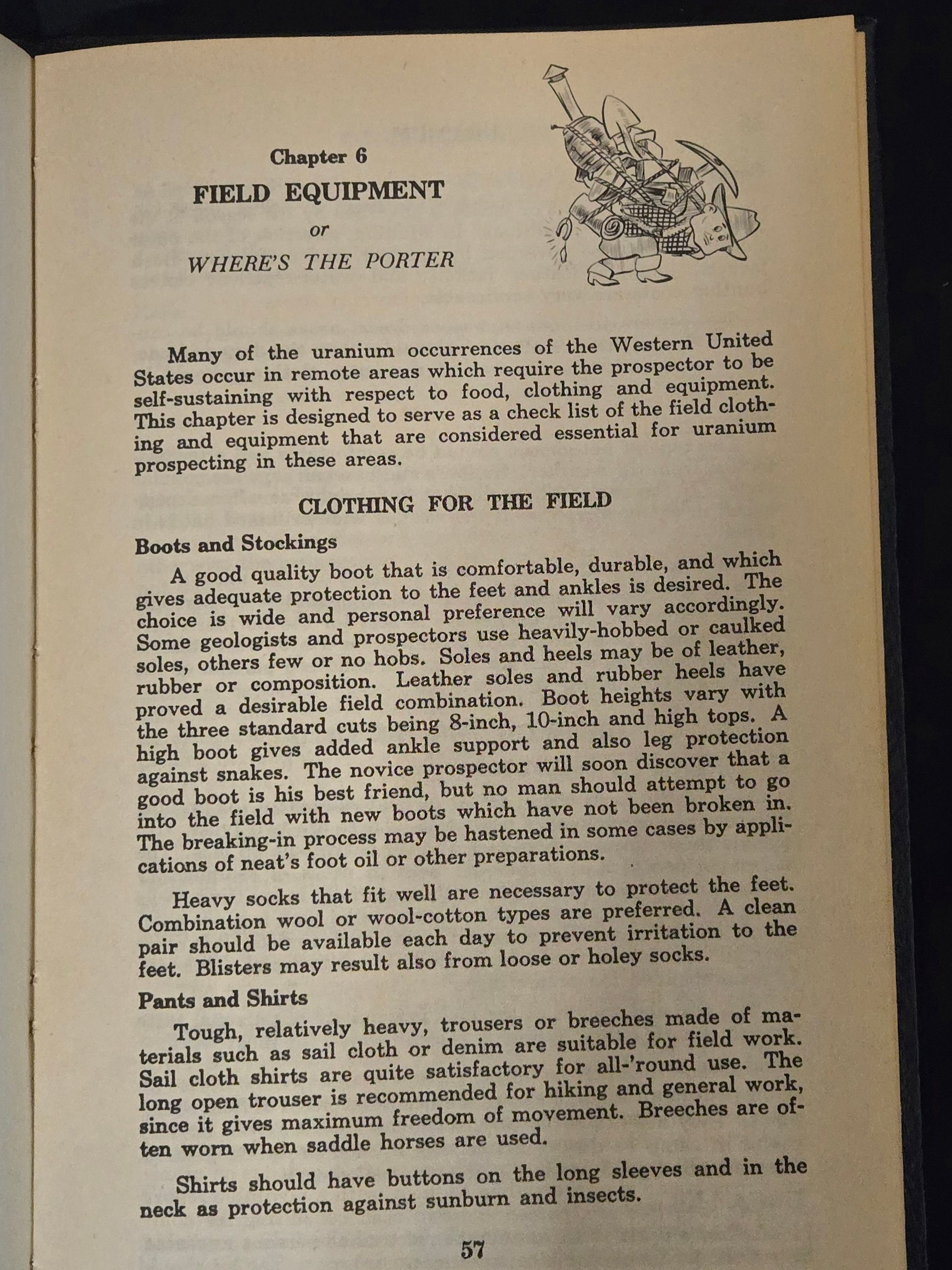 One of the more substantial field-oriented uranium prospecting guides to come out of the mid-century boom, this volume goes beyond counter technique into the geology of uranium occurrence — where deposits form, what host rocks to look for, associated minerals, and how to read the landscape for prospecting potential. Proctor, Hyatt, and Bullock wrote for the serious layperson: someone willing to learn enough geology to stop wandering and start prospecting with purpose.