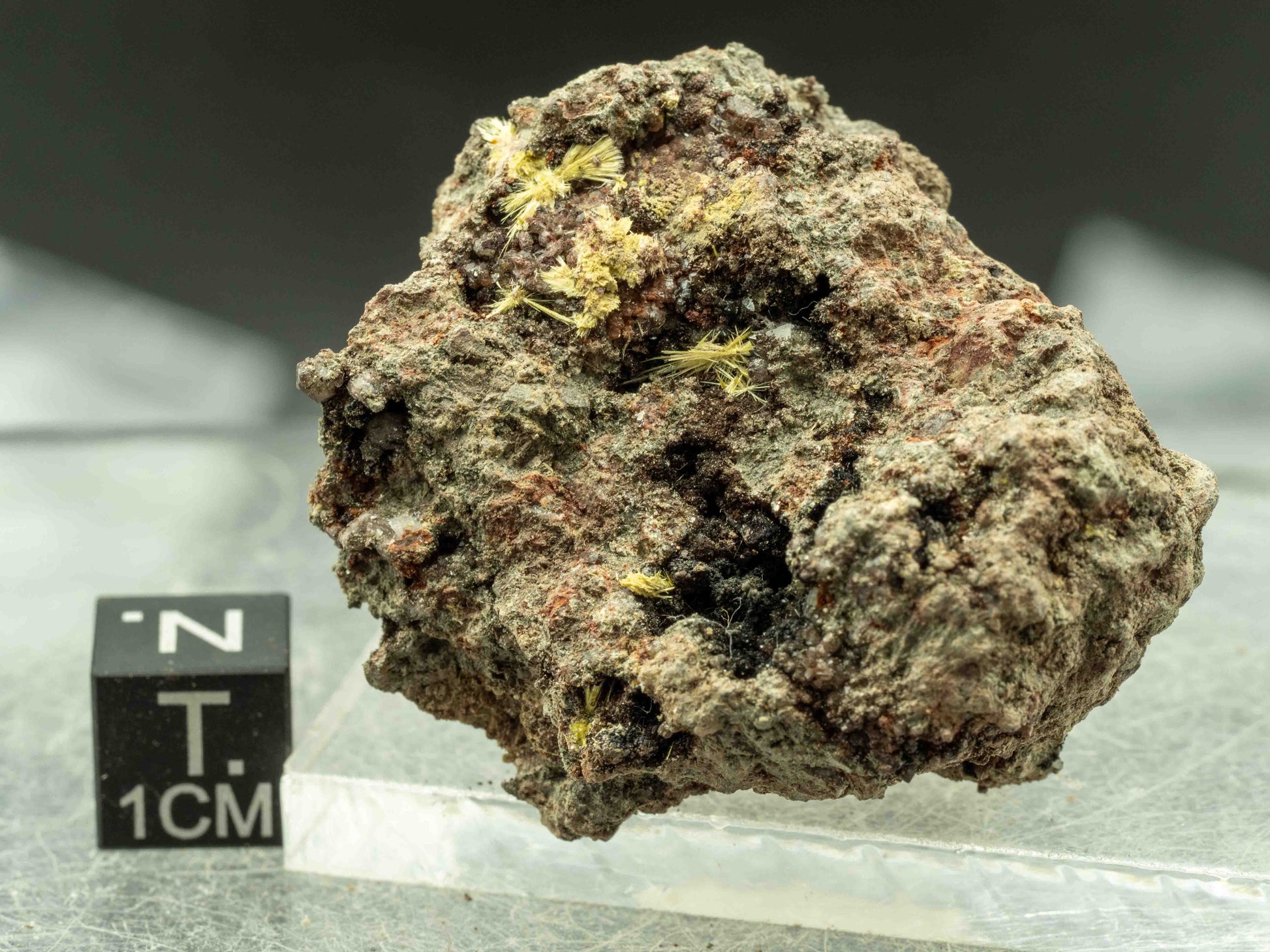 Mineralogically, uranophane (Ca(UO₂)₂(SiO₃OH)₂·5H₂O) is a secondary uranium mineral formed during the oxidative alteration of primary uranium species such as uraninite. Specimens from Faraday are valued both for their locality significance within Ontario’s mid-20th-century uranium boom and for their representation of secondary uranium mineralization processes in granitic and pegmatitic environments. A solid addition to any Ontario or uranium-focused collection.
