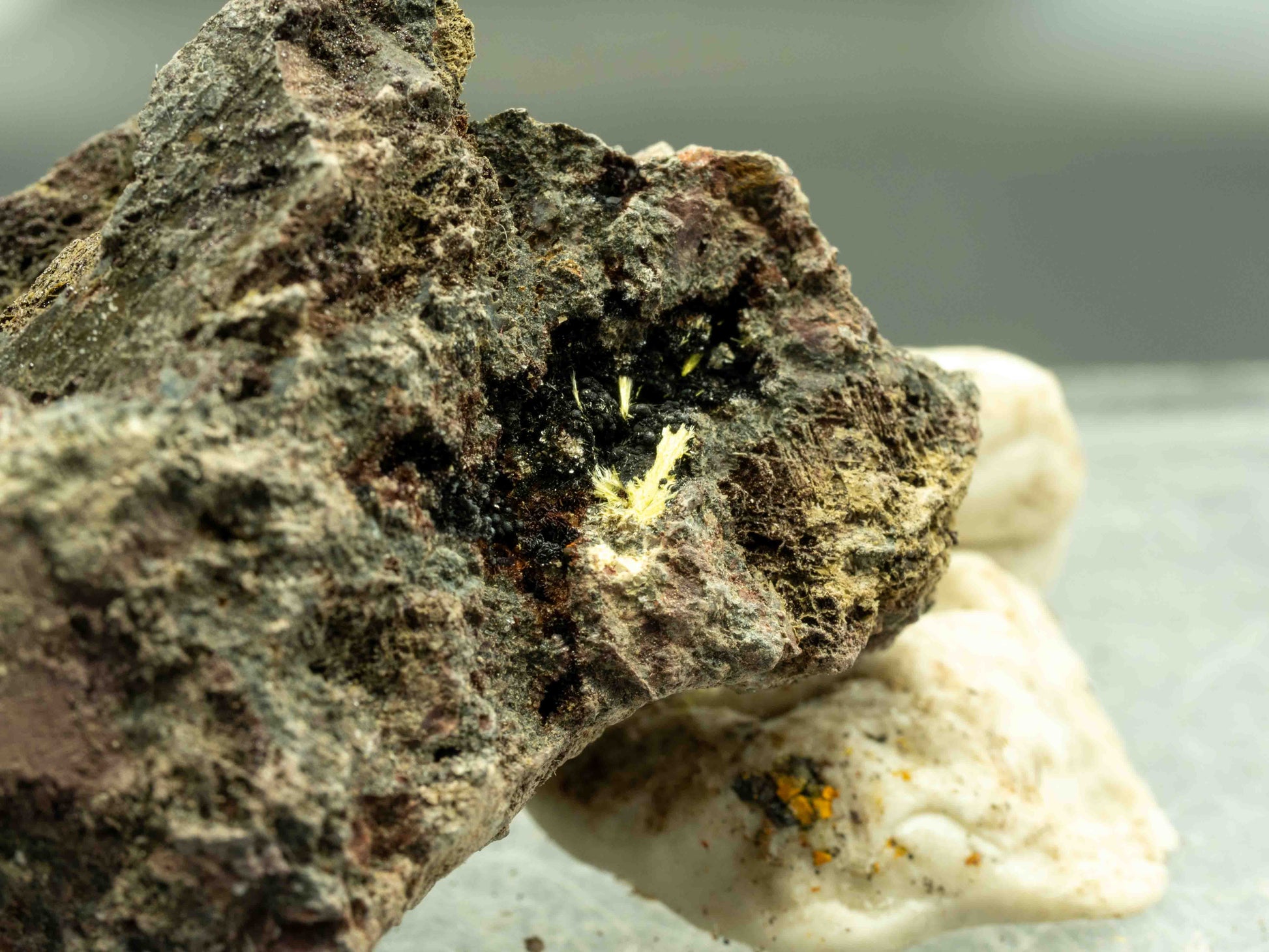 Mineralogically, uranophane (Ca(UO₂)₂(SiO₃OH)₂·5H₂O) is a secondary uranium mineral formed during the oxidative alteration of primary uranium species such as uraninite. Specimens from Faraday are valued both for their locality significance within Ontario’s mid-20th-century uranium boom and for their representation of secondary uranium mineralization processes in granitic and pegmatitic environments. A solid addition to any Ontario or uranium-focused collection.